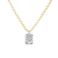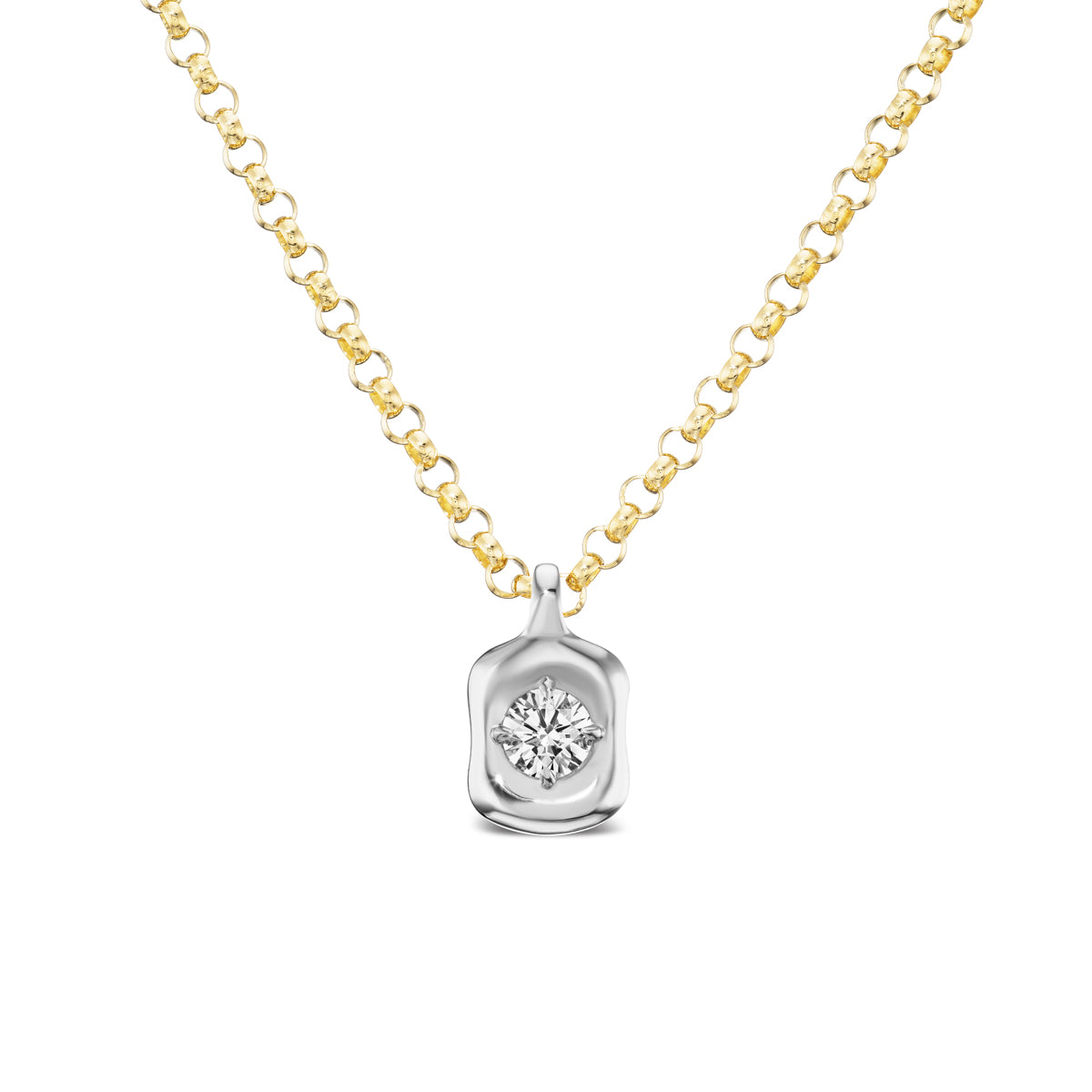 Part of the Nebula collection, this necklace features a .75 carat round modern natural diamond, set in our pillowy mounting, roughly 0.5" tall. It is paired with our 3.0mm 18 inch Rolo chain, with a jump ring at 16 inches for the option of a shorter look.