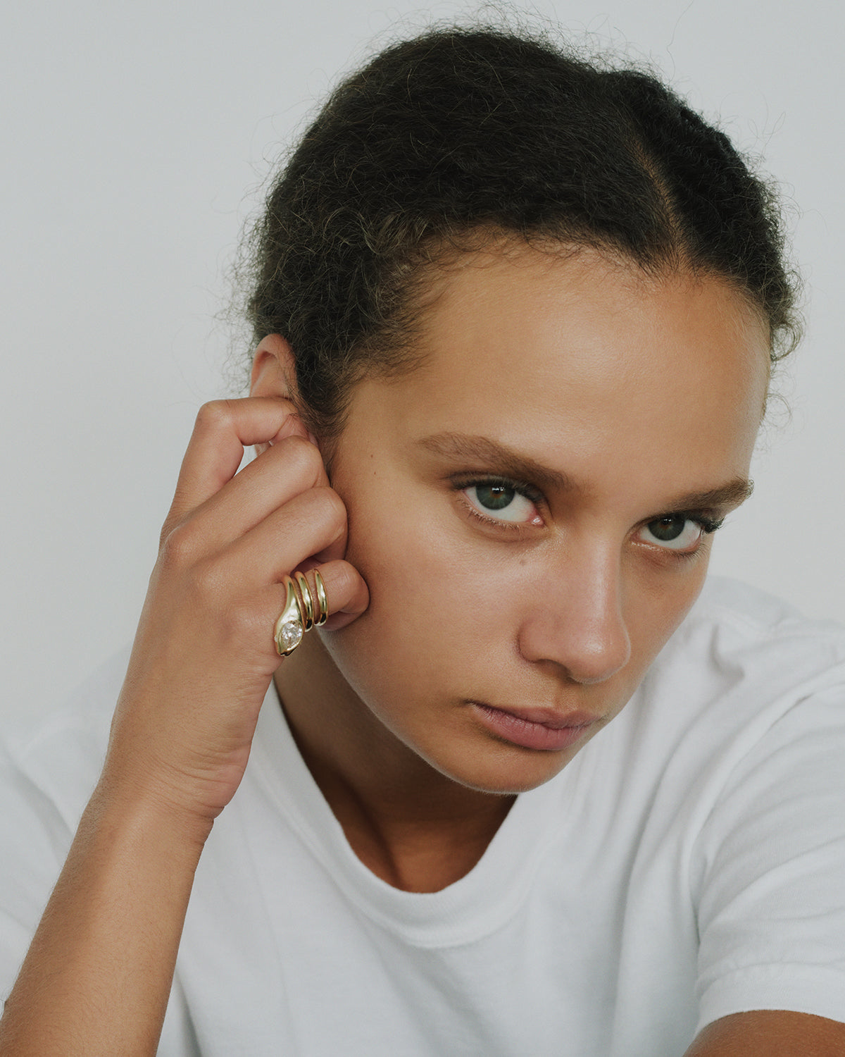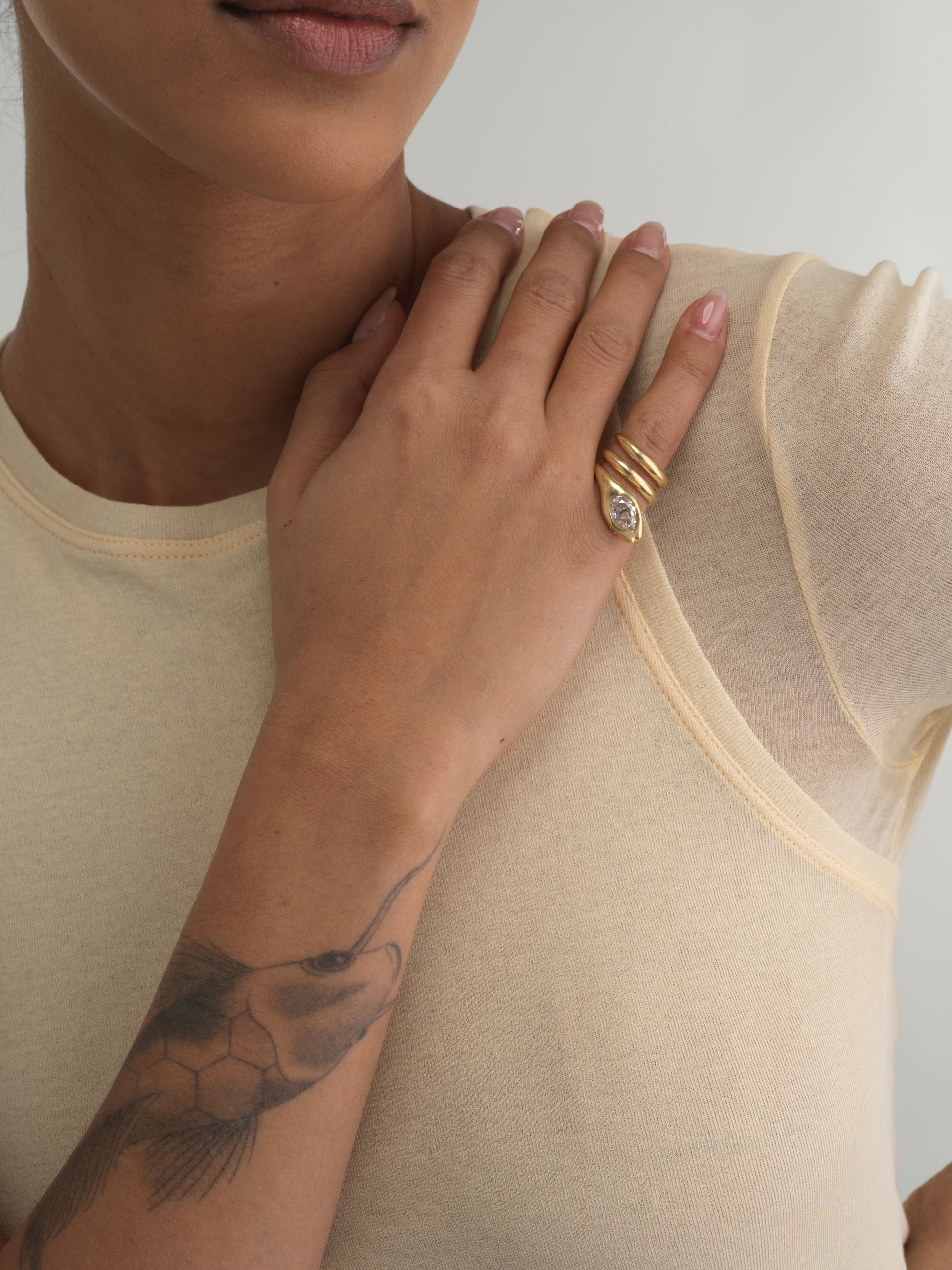 The serpent ring is a staple in the Arielle Ratner office. Worn daily by the designer herself, this piece can be made with any pear-shaped stone whether it be diamond or colored gems. This serpent is made with a 1.3 carat natural stone.