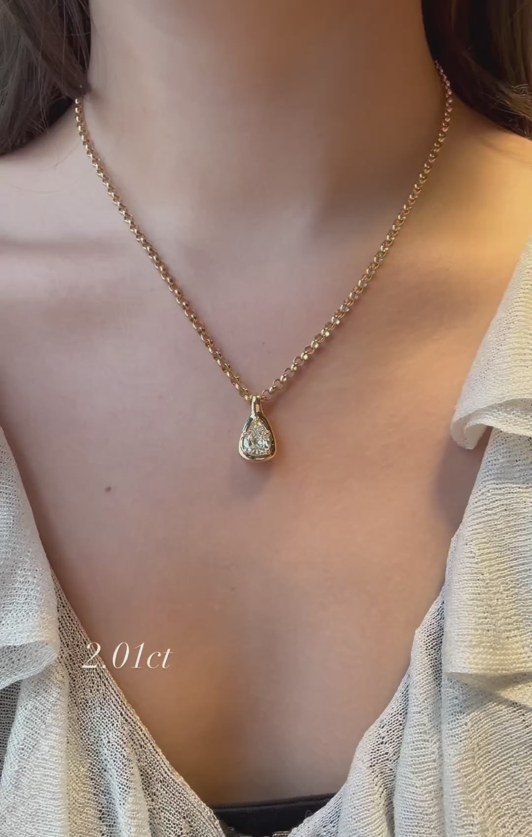 Part of the Nebula collection, this necklace features a 2.01ct pear diamond, set in our pillowy mounting. Pair it with our Rolo or Omega chain.