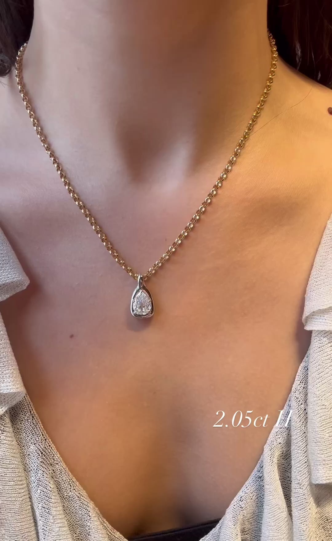 Part of the Nebula collection, this necklace features a 2.05ct pear diamond, set in our pillowy mounting. Pair it with our Rolo or Omega chain.