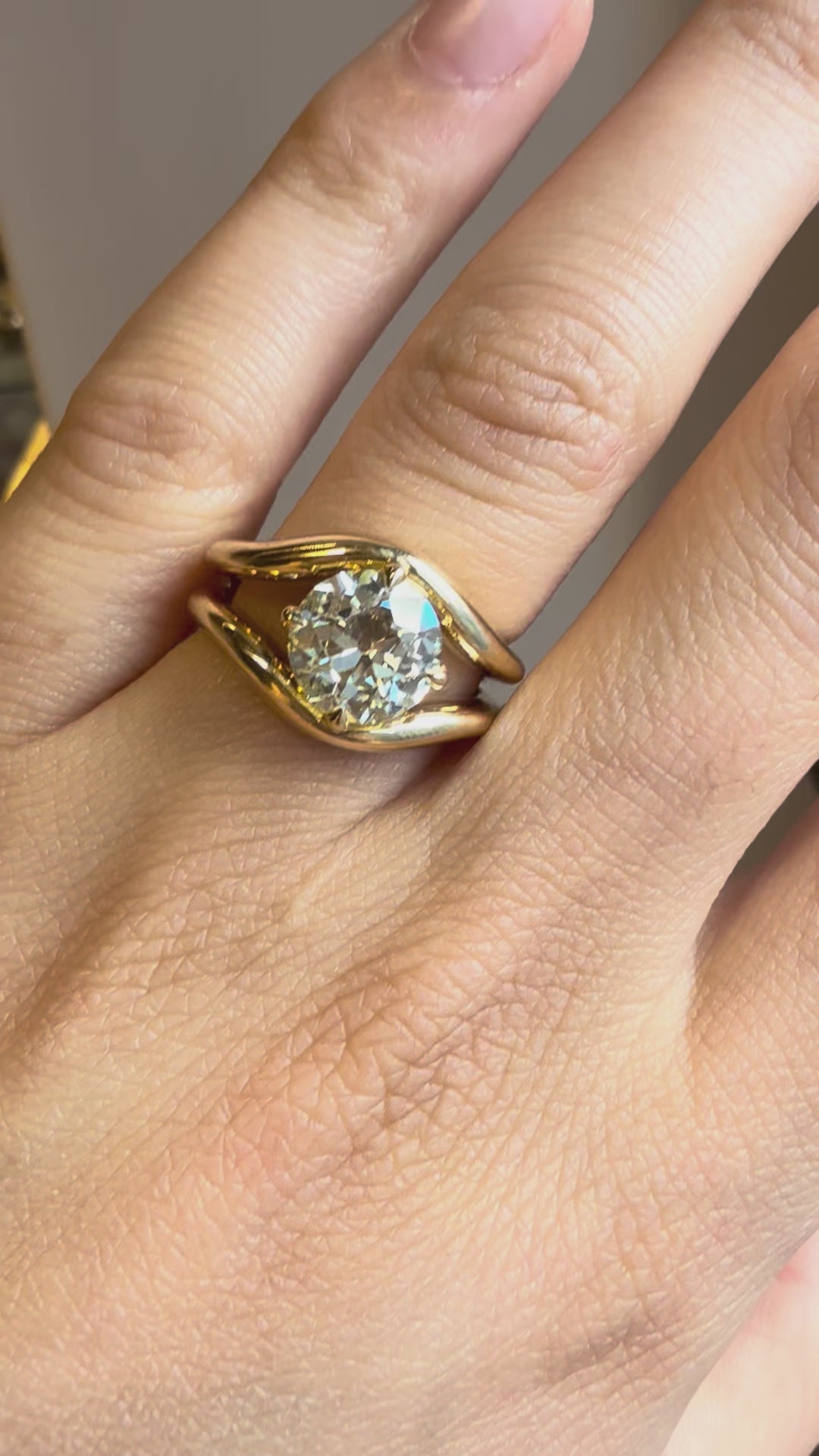 The Roche is both graceful, yet substantial, with its center stone suspended between two heavy gold bands. Designed for the bride who wants a showpiece that's still elegant and refined.