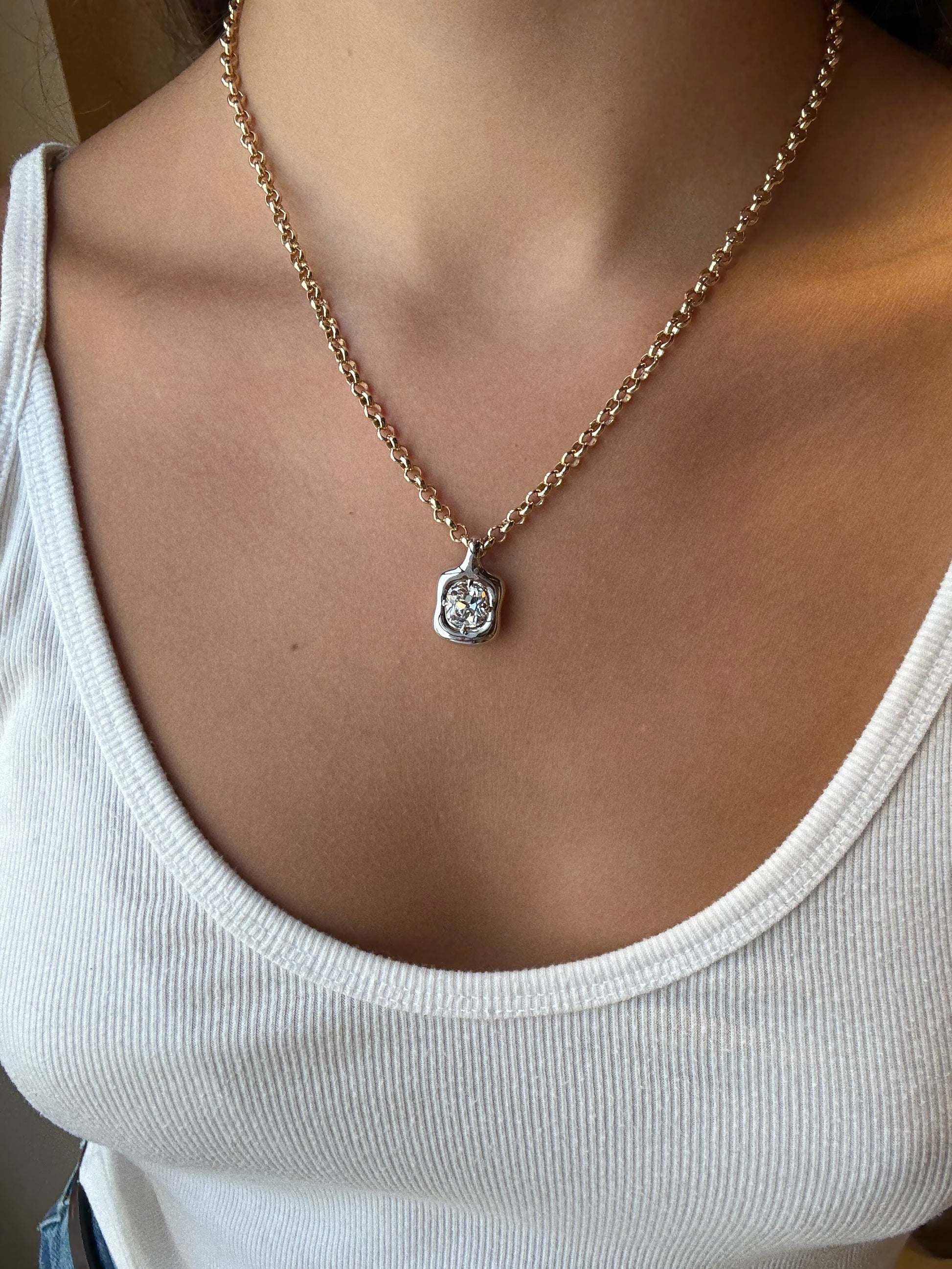 This stunning Old Miner diamond takes centerstage nestled into our pillowy white gold Nebula mounting.