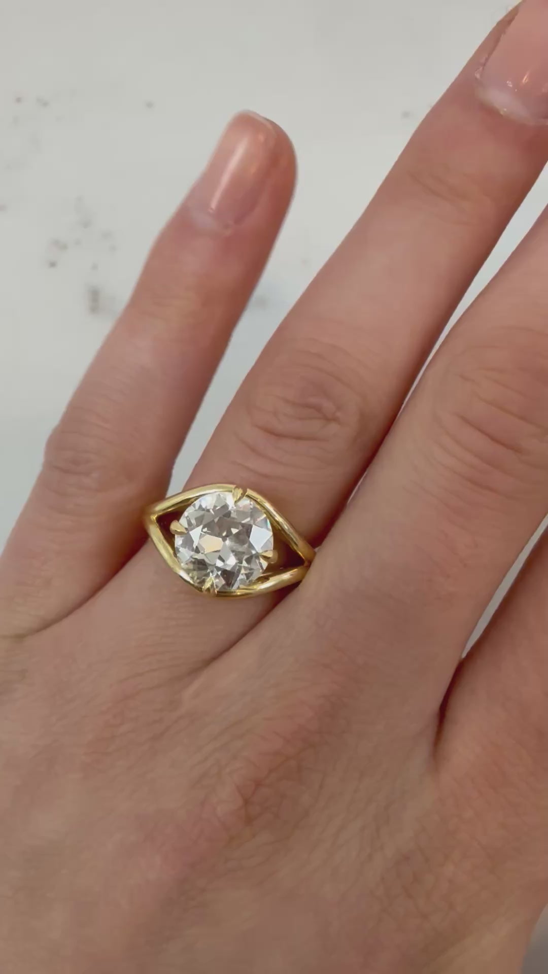 The Filo is all about movement of form. Arielle had always been drawn to spherical shapes and their representation of infinity—a form without beginning or end. This style is especially complementary to antique cut stones, celebrating the individuality of old mine and old European diamonds. The Filo is available in two styles, with or without a gap.