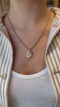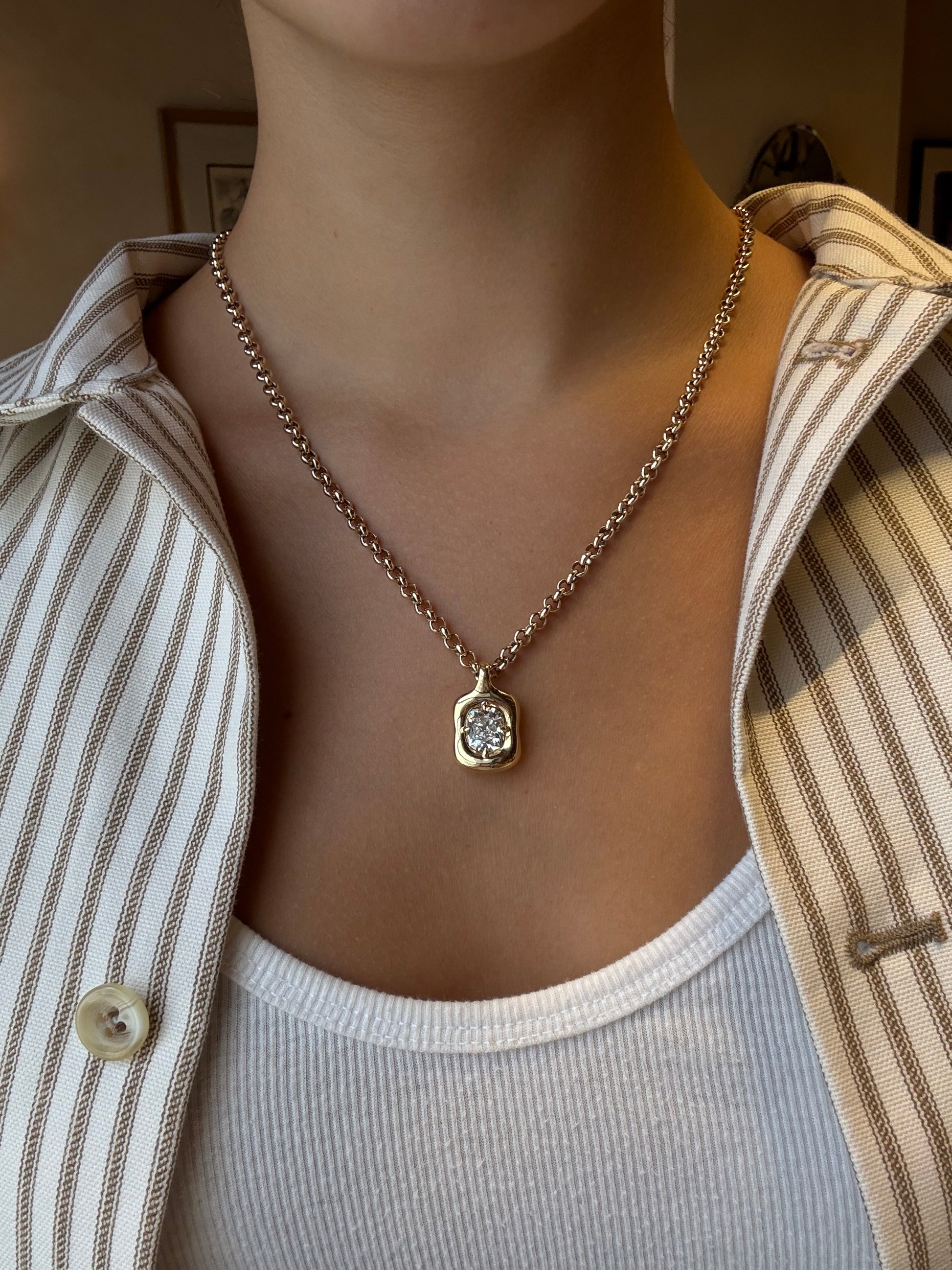 This stunning Old Miner diamond takes centerstage nestled into our pillowy yellow gold Nebula mounting. Pair it with our Rolo or Omega chain.