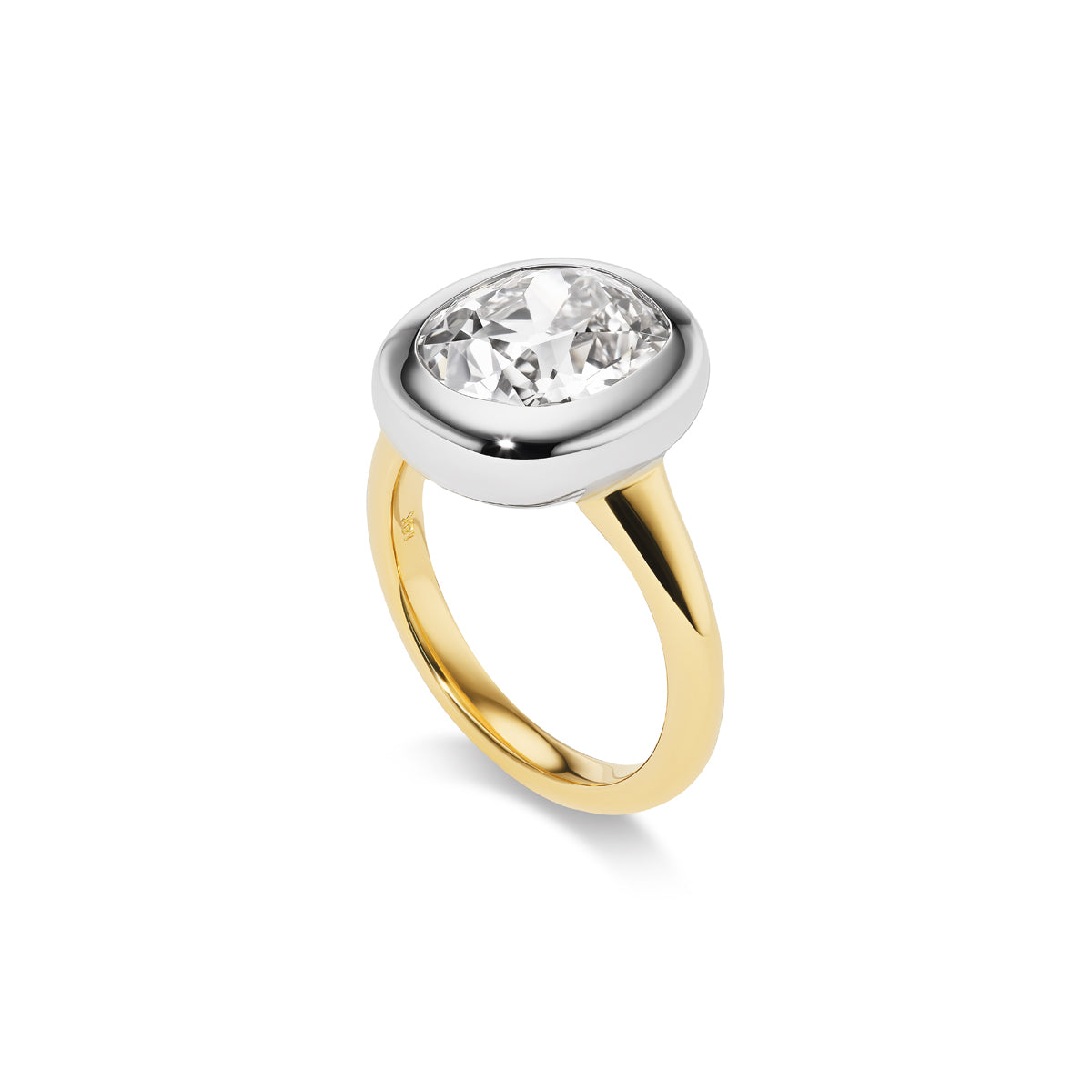 The Sera Ring is for the bride who wants a new take on a classic design. The two-tone ring features a white gold bezel with a yellow gold band, resulting in an ultra-modern, ultra-flattering ring that has quickly become one of our most sought-after statement pieces.