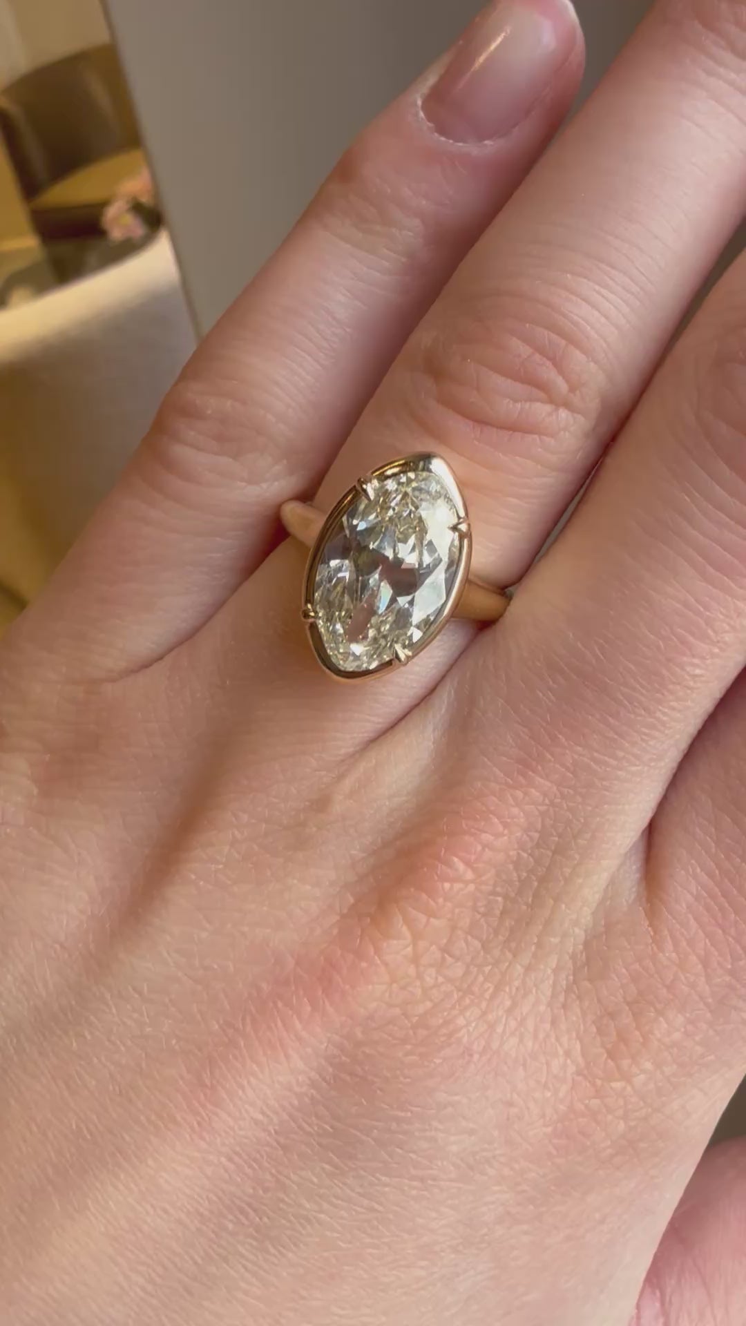 The Sera Ring is for the bride who wants a new take on a classic design. Featuring a sleek, tapered band and smooth bezel setting, The Sera is ultra-modern and ultra-flattering. We find it looks particularly fetching with elongated stones, such as pears, marquises, and emerald cut diamonds.