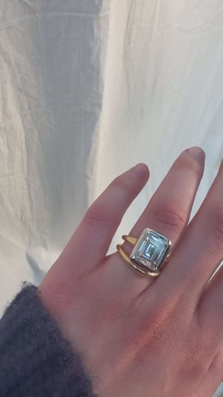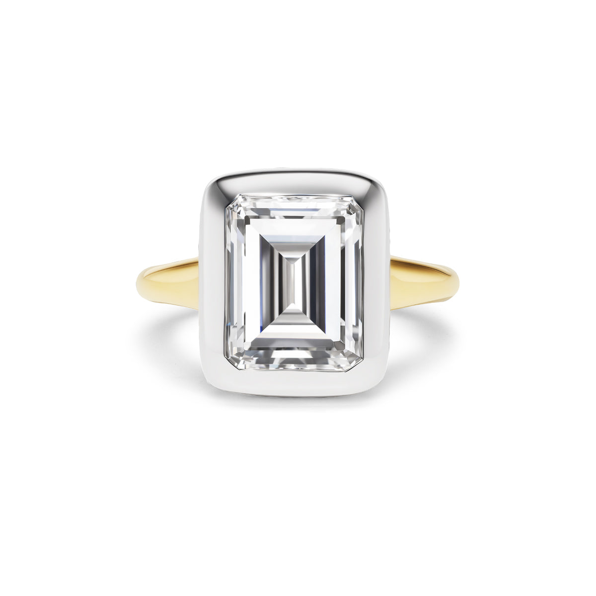 The Sera Ring is for the bride who wants a new take on a classic design. Featuring a sleek, tapered band and smooth bezel setting, The Sera is ultra-modern and ultra-flattering. We find it looks particularly fetching with elongated stones, such as pears, marquises, and emerald cut diamonds.