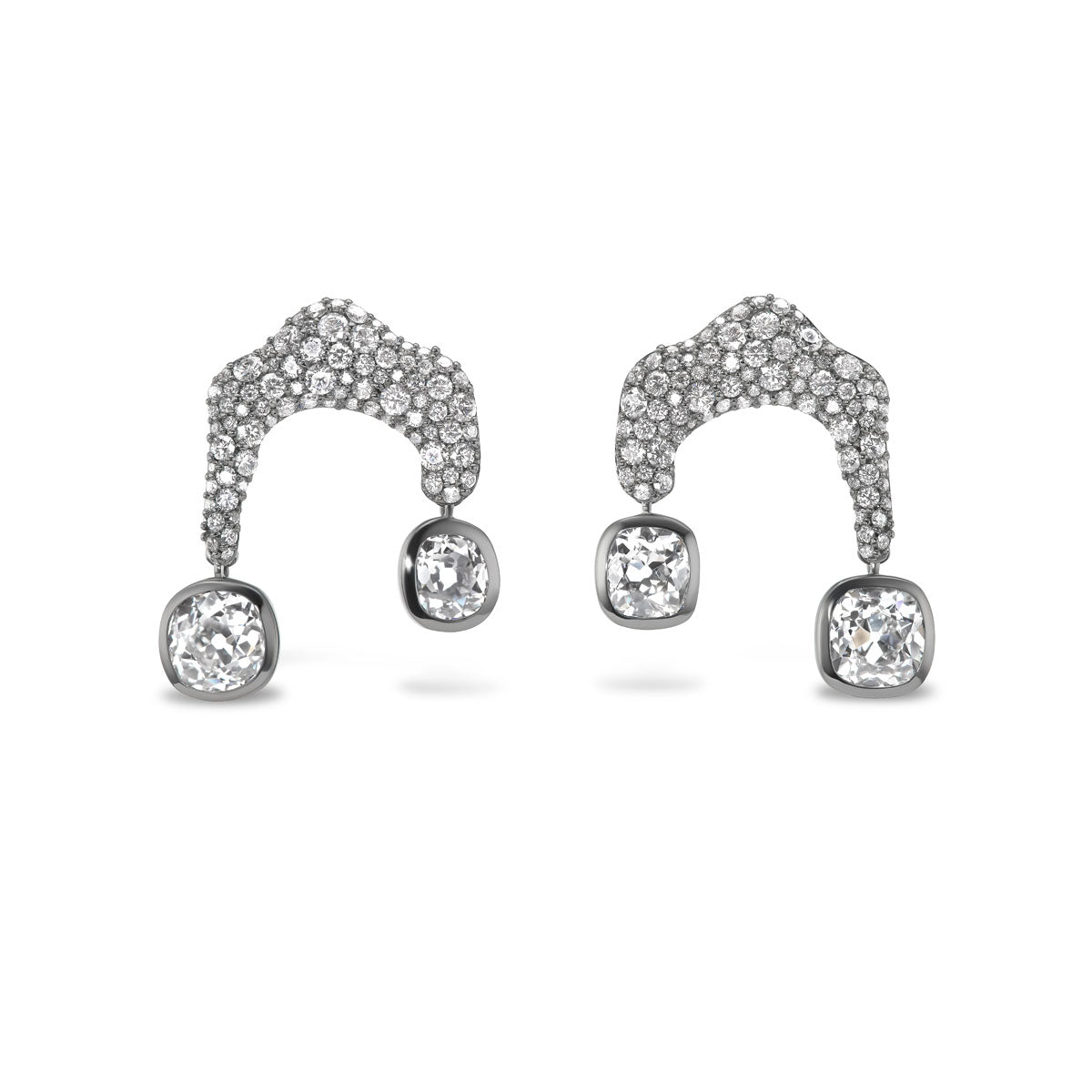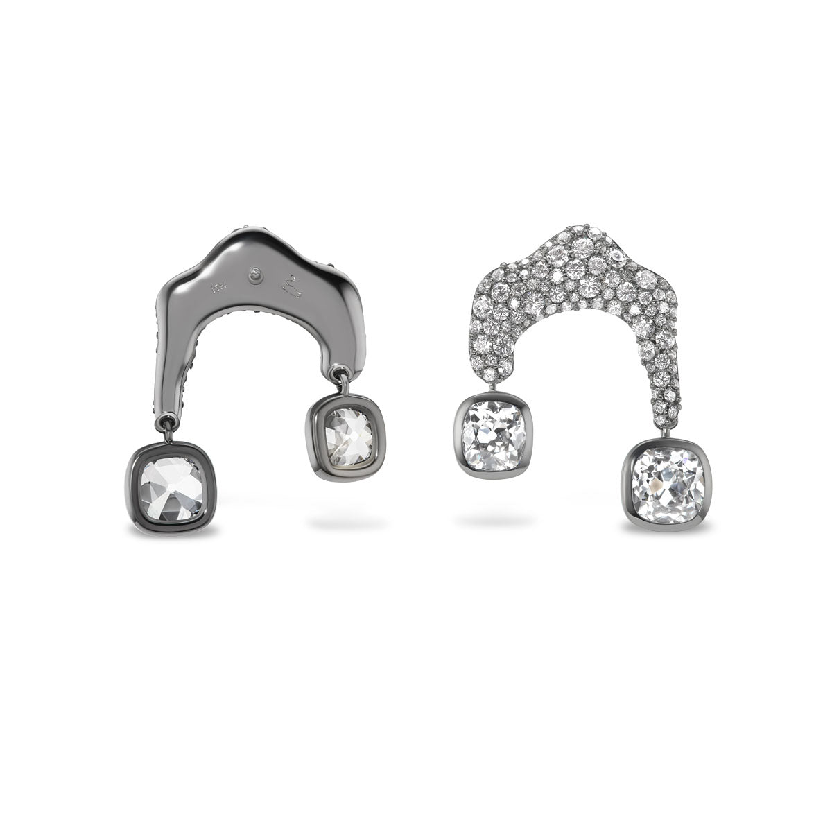As their Spanish name suggests, The Boda Earrings are the perfect bridal accessory. A marriage of sparkle and tradition, the pavé posts feature two old miner diamonds on either end. The abstract shape was derived from our Flora collection: it widens and narrows, ebbs and flows across the ear making a statement worthy of an updo.
