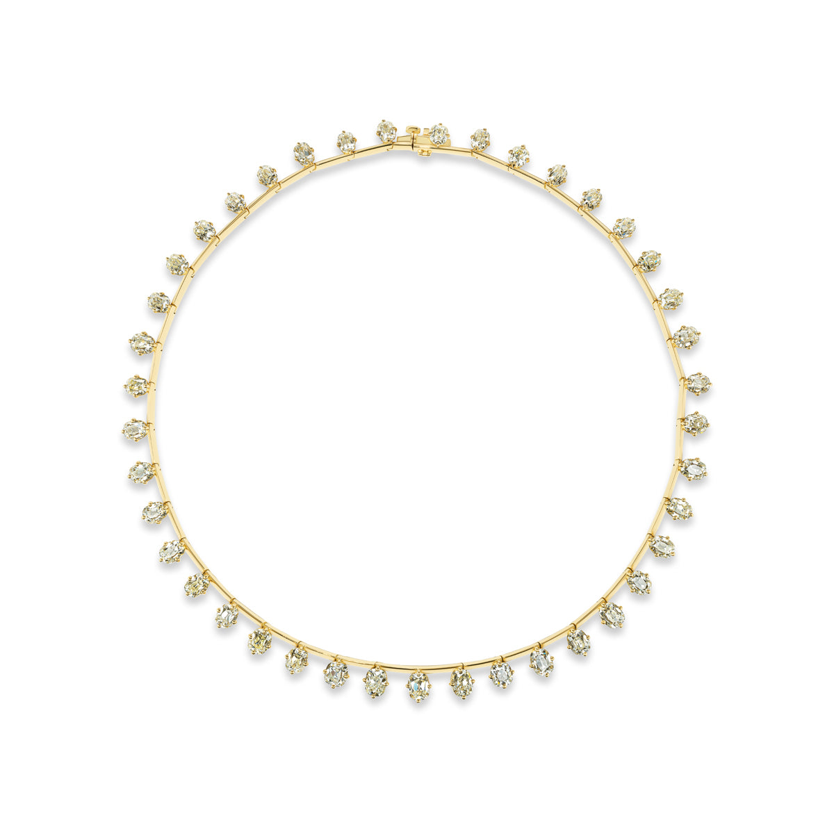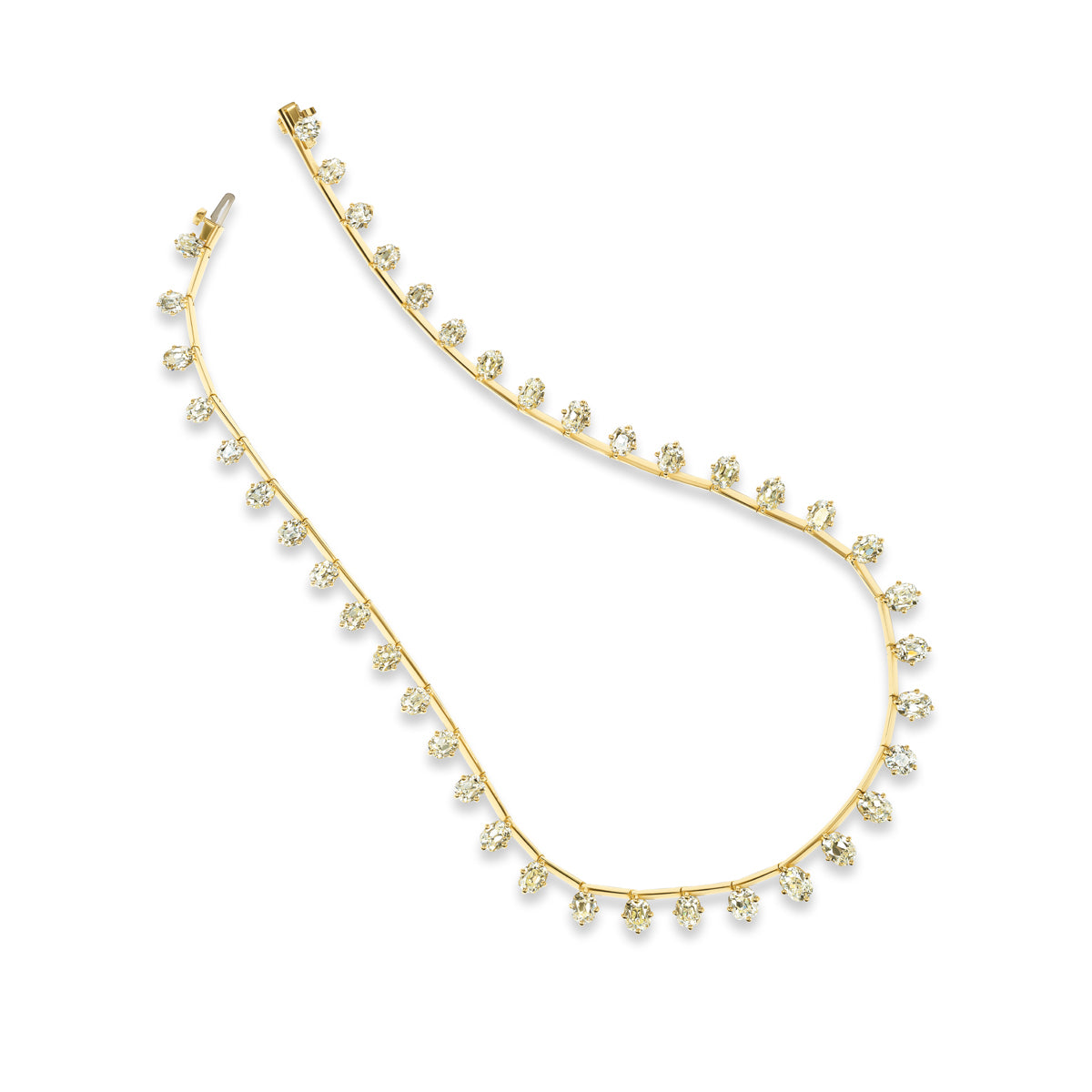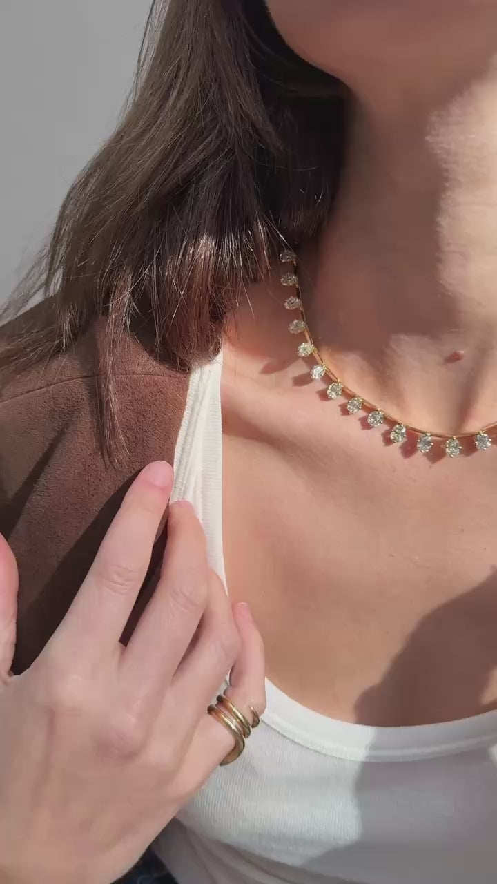 Elevate your collection with the Spina Necklace, featuring 28.56 carats of antique old miner diamonds meticulously arranged in a cascading spine-like design. This piece combines timeless elegance with a luxurious yet cool aesthetic. Perfect for those who appreciate heritage stones with a contemporary edge.