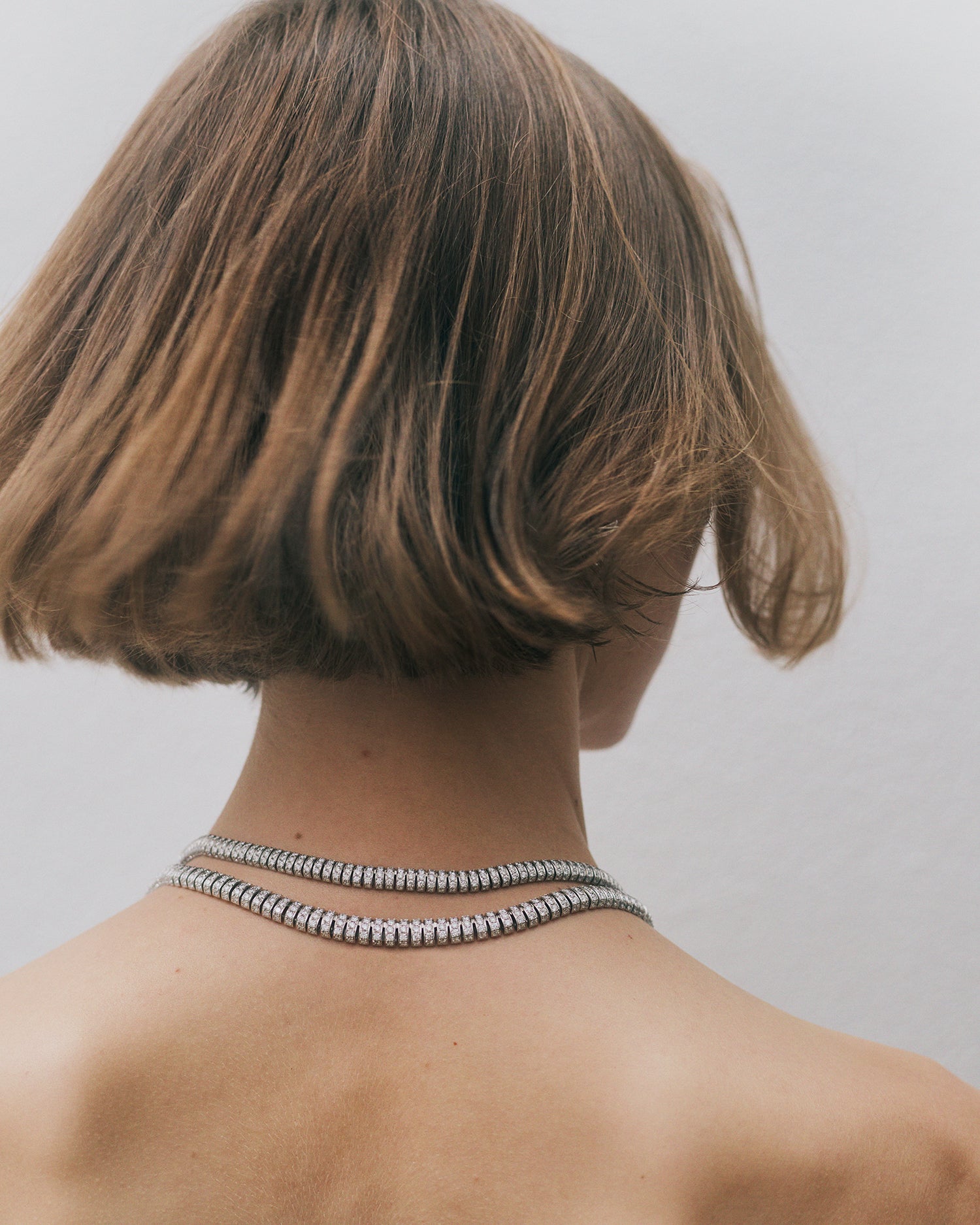 Part of the Gatsby collection, the Thin Diamond Collier is our take on the Tennis Necklace. Don't just reserve it for special occasions, a piece this beautiful should be worn daily. We like it paired with a crisp white tee and jeans for an easy outfit upgrade.