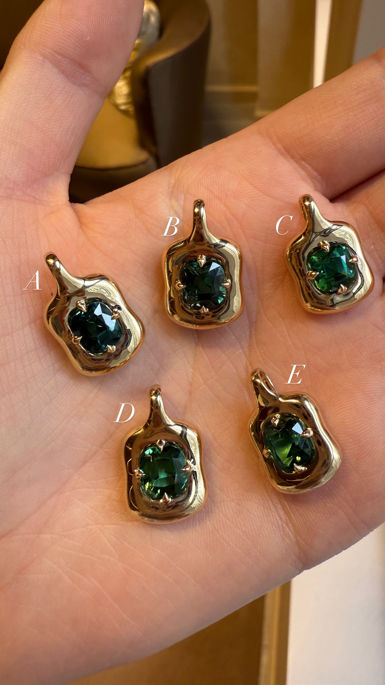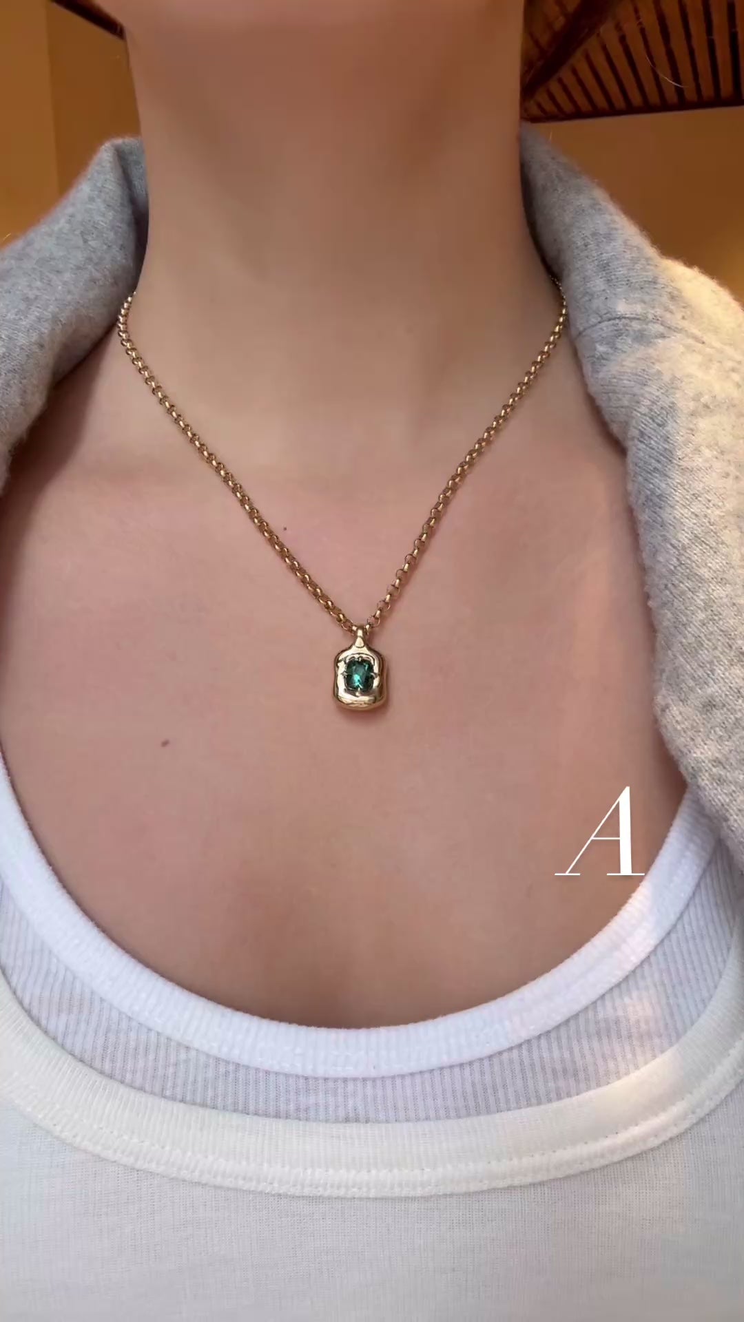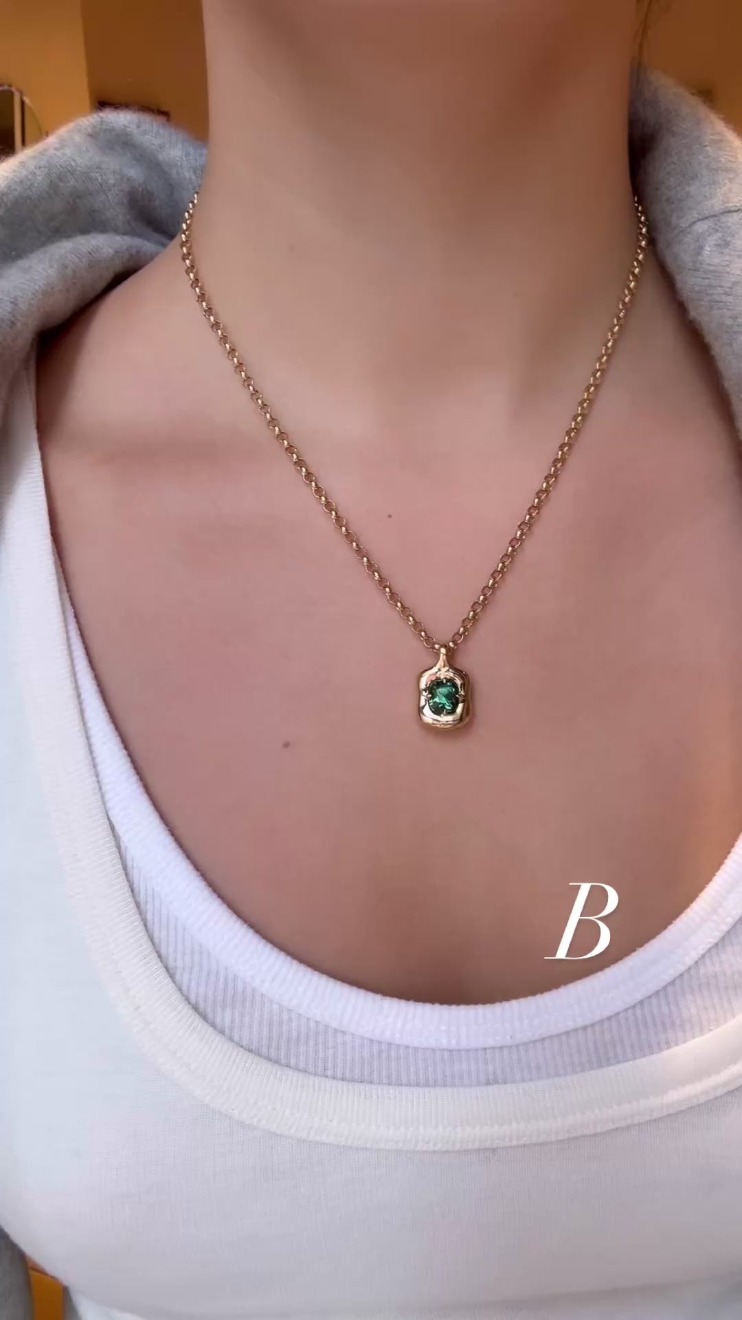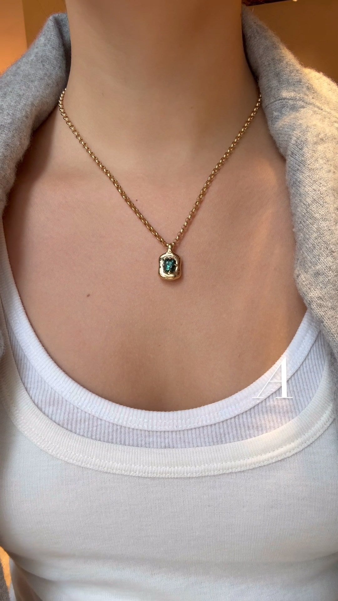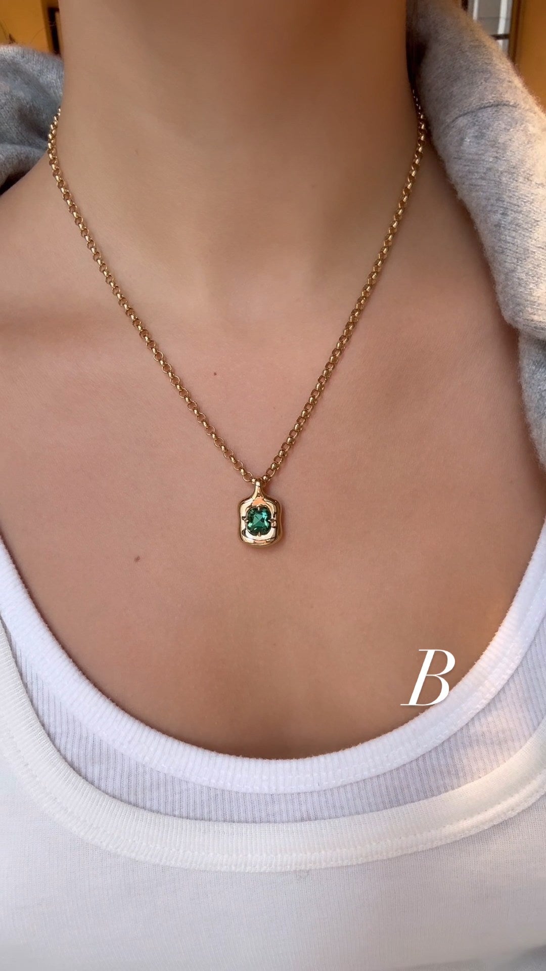 Part of our latest limited-edition collection, our signature Nebula setting now with green tourmalines. Shown here with our 3.3mm Rolo Chain. Please note chain is sold separately.